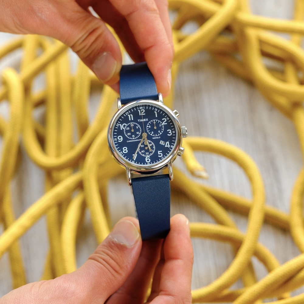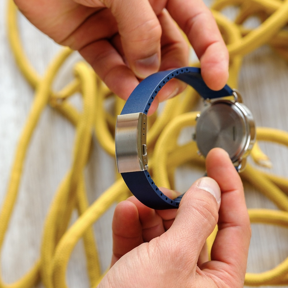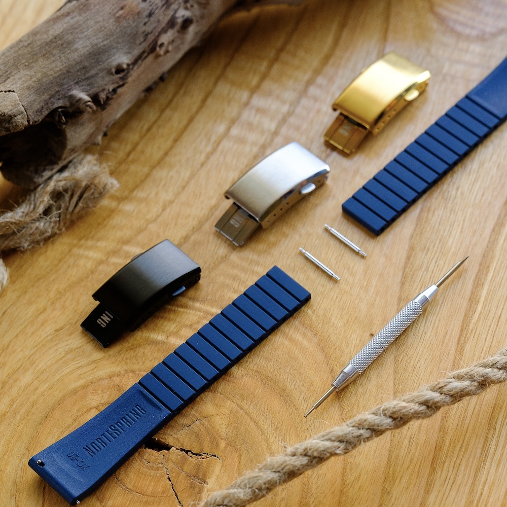 O sistema Cut To Size permite cortar a bracelete à medida, enquanto o fecho desdobrável com quatro posições de microajuste garante um encaixe preciso e confortável. Disponível em 18, 20 e 22 mm e em seis cores versáteis, adapta-se facilmente a relógios clássicos, desportivos ou de uso diário.